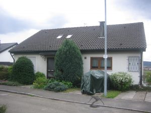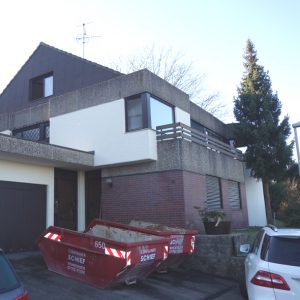Ein Flachdachwohnhaus aus dem Baujahr 1975 mit einer typischen Eternithfassade über 3 Geschosse, energetische Grundsanierung sowie Umbauten zu neuen Zimmeraufteilungen durch Einbau von Stahlträgern, neue Elektroinstallationen im ganzen Haus,